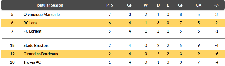- Bordeaux are winless in the opening four matches collecting just two points from the draw against Marseille and Angers.