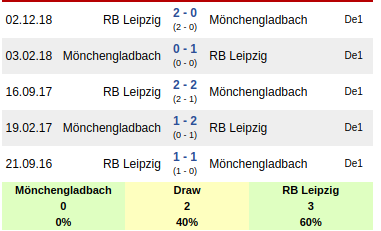 Borussia Monchengladbach vs RB Leipzig Prediction: Head to head