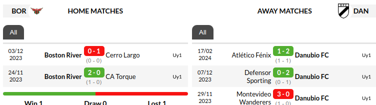 - Boston River boast a strong home record with 4 wins in their last 10 home games, while Danubio excel on the road, winning 6 in their last 10 away matches.
