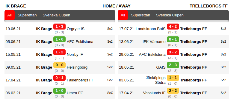 Brage vs Trelleborgs Prediction: Home/Away Matches