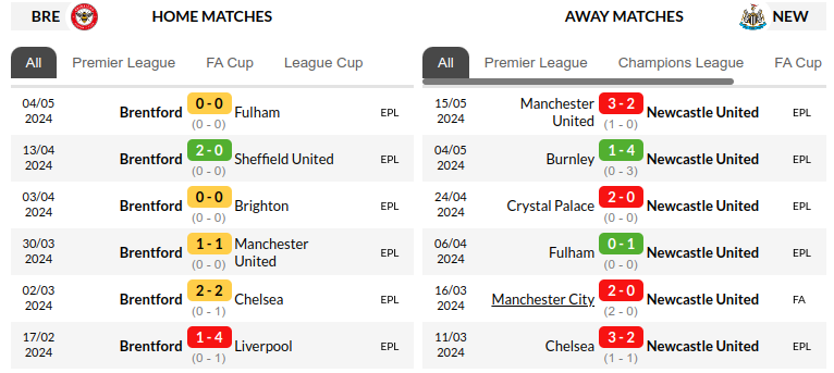 However, historically, Brentford has struggled against Newcastle, failing to win any of their previous five Premier League head-to-head encounters (one draw and four losses).