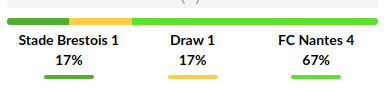 - Nantes also picked up a massive win last time out, to end their winless run of five matches. The visitors are still stuck in the bottom three and are four points adrift of safety. This a must-win game for the visitors if they want to salvage their season. Nantes have won four away matchesin their last five outings.