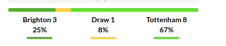 - Brighton sits in the Champions League places ahead of Tottenham’s visit who are three points above them.