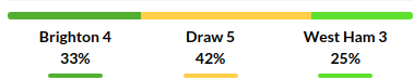 - Brighton’s form at home has been disappointing this campaign collecting only three wins and eight draws.
