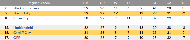 - Cardiff is in dire form and needs to turn thins around before it’s too late well Bristol has an eye on the playoff.