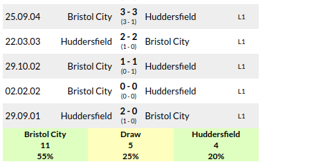 Bristol City vs Huddersfield: H2H