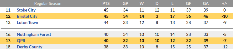 Bristol City vs QPR Prediction: Standing