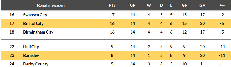- They have managed one win across 14 matches and are stuck in the bottom three.