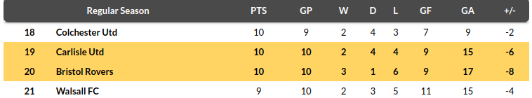 - The hosts are three points above the bottom two with three wins from the ten matches played.