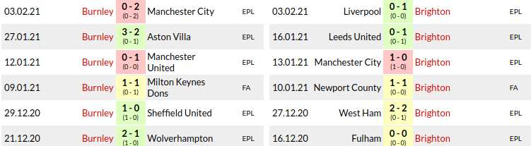 Burnley vs Brighton Prediction: H2H