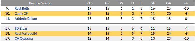 - Valladolid are in the bottom three heading into this game and have won once in their last five matches in La liga.