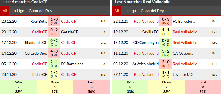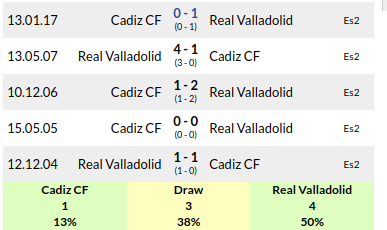 Cadiz vs Valladolid Head-to-Head (H2H)