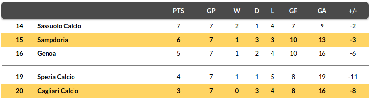 Worryingly, Cagliari remains the only team yet to pick a win in Serie A.