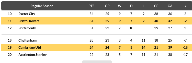 Cambridge vs Bristol Rovers: Standing