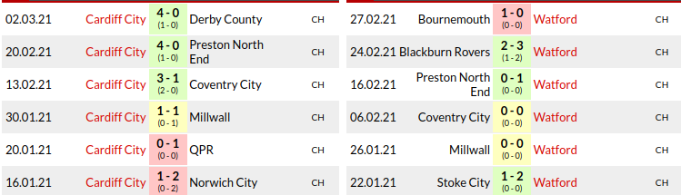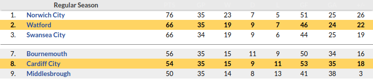 - Cardiff are on an 11 match unbeaten run, with seven wins and four draws. The good run has thrown them right into the playoff picture with just four points behind.