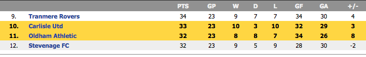 Carlisle Vs Oldham Prediction Standing