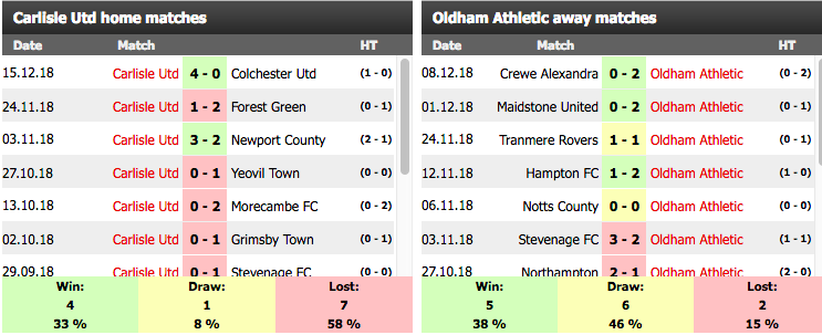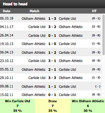They haven’t drawn in their last five meetings as Oldham won twice and Carlisle won three times.