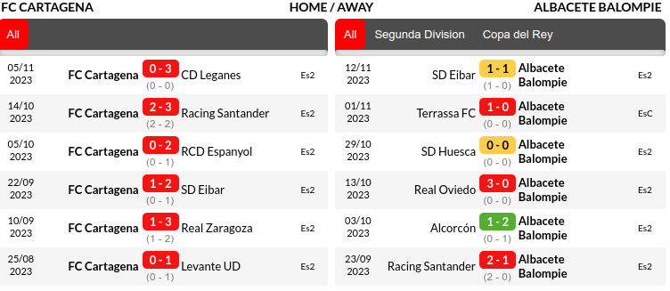 FC Cartagena and Albacete will meet with both teams currently enduring winless streaks in Segunda División.