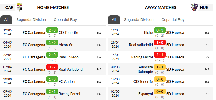 The last encounter between these two sides in December saw Huesca secure a comfortable 3-0 victory at home. FC Cartagena will be looking to avenge this defeat and potentially extend their home winning streak against a vulnerable Huesca team.