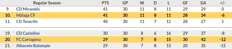 - Malaga were held to a 1-1 draw by fellow promotion chasers last time out. They have managed four wins from the last ten matches.