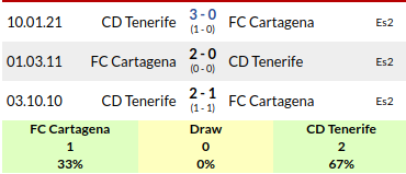 - Cartagena has claimed six wins at home this season, with five draws and six defeats, they will welcome Tenerife, on a six-match unbeaten streak at home.