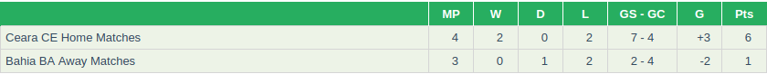 Ceara CE Vs Bahia BA Prediction: Home/ Away Matches