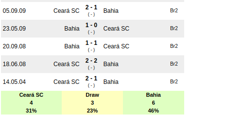 The last five meeting between these two has seen Bahia dominate the proceedings with four wins and a draw.