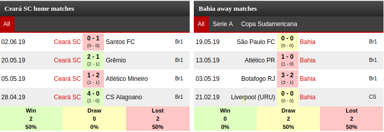 - Ceara lost narrowly to Santos last time at home to record their fourth defeat of the season and second at their own backyard.