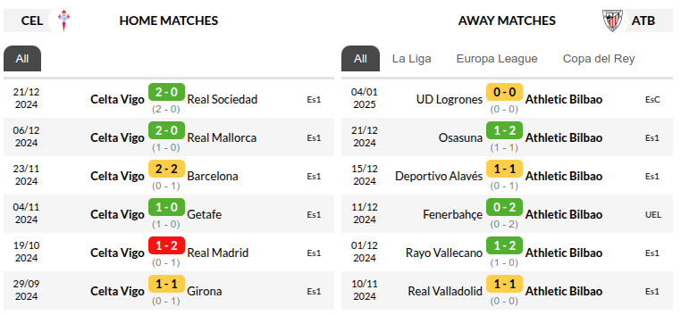 Celta Vigo vs Athletic Bilbao Prediction: Standing