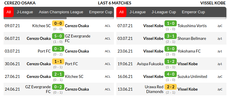 Cerezo Osaka vs Kobe Predictions: Current Form