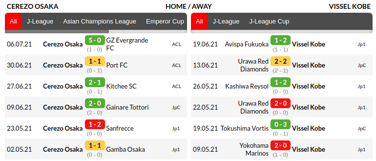 Cerezo Osaka vs Kobe Predictions: Home/Away Matches