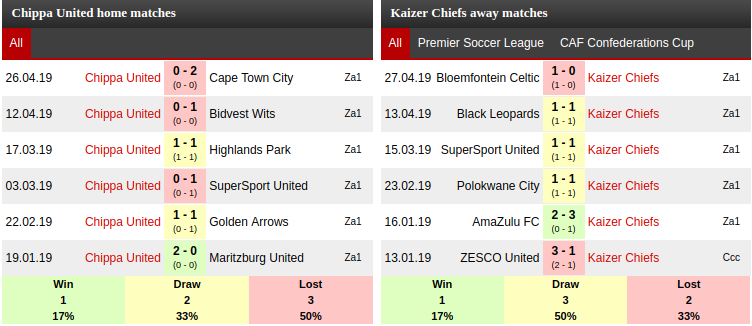Chippa United Vs Kaizer Chiefs Prediction: Home Away Matches