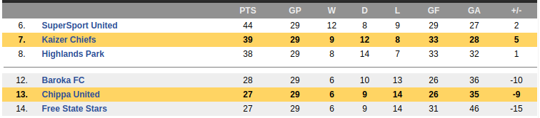 Chippa United Vs Kaizer Chiefs Prediction: Standing