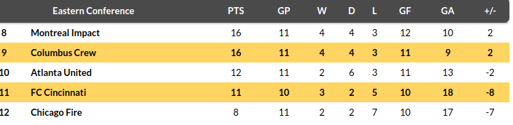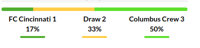Cincinnati vs Columbus Crew Predictions: Standing