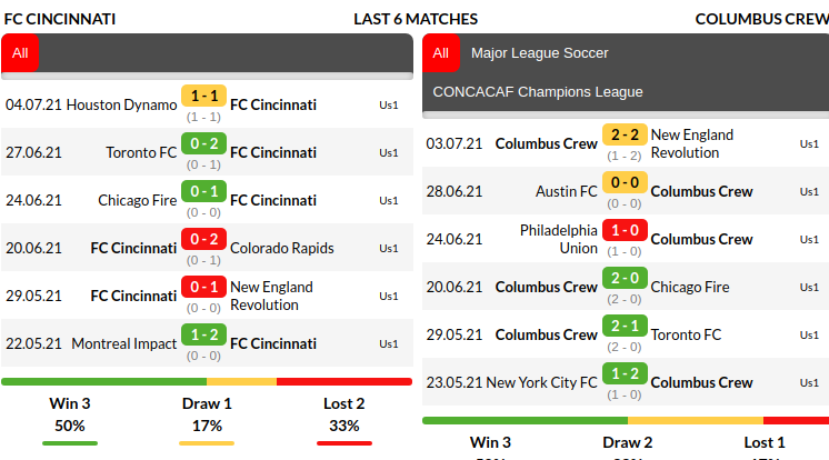 Cincinnati vs Columbus Crew Predictions: Current Form