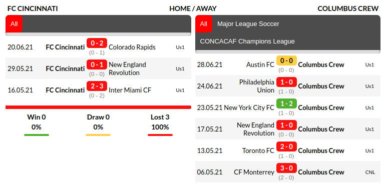Cincinnati vs Columbus Crew Predictions: Home/Away Matches