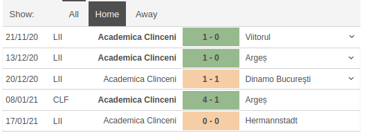 - At home, Clinceni have won four of the 9 games drawn 3 and lost 2.