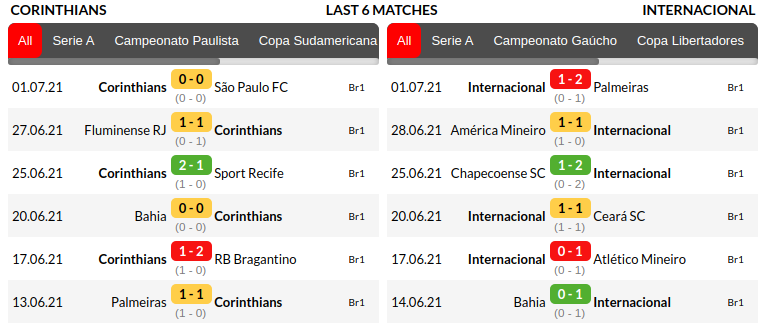 Corinthians vs Internacional Prediction: Home/Away Matches