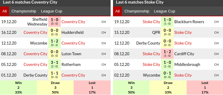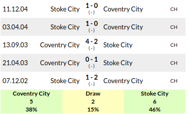 Coventry Vs Stoke City Prediction: Last Six Matches