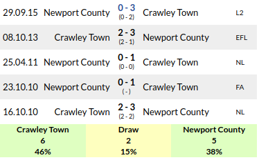 Crawley Town Vs Newport Prediction: Last Six Matches