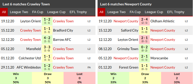 - In their last five matches, Newport have two wins to their name while there have been two draws While Crawley have just one win.