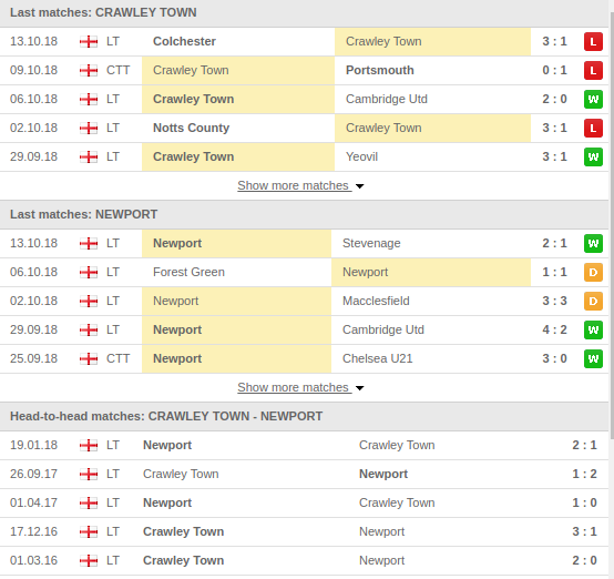 Crawley Town Vs Newport Predictions & H2H: Head To Head