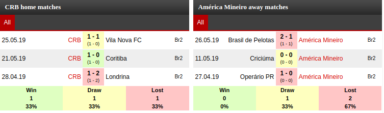 CRB AL Vs America Mineiro MG Prediction: Current Form