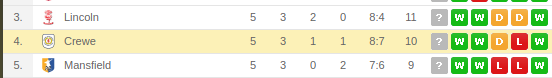 - Crewe registered a 1-0 win over MK Dons away from home to build on their 3-2 win over Newport Co in the previous game.