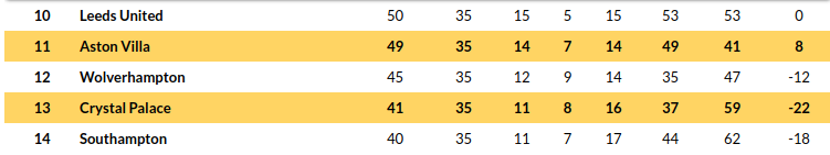 Crystal Palace season seems to over and are expected to wait for the overhaul over the summer. Aston Villa are expected to have jack Grealish On Sunday but its unlikely that he will offer the spark that we saw him do over and over before his injury.
