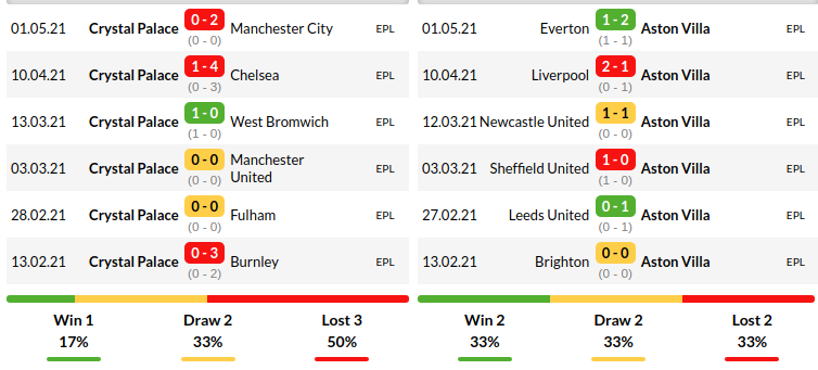 Crystal Palace vs Aston Villa Prediction: Home/Away Matches