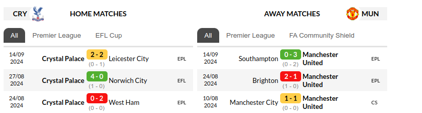 The head-to-head record favors Crystal Palace, who have dominated their recent encounters against Manchester United. However, Manchester United’s recent form and determination to secure a victory could make this match competitive.