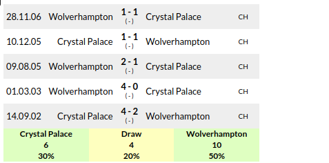 Crystal Palace vs Wolverhampton Prediction: Home/Away Matches