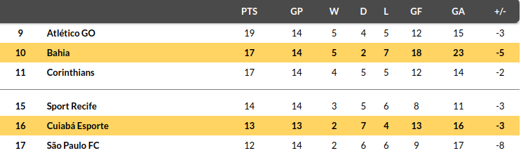 - Bahia has failed to win any of the last five matches and in the process failing to get on the score sheet in that period.