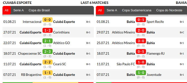 - Cuiaba held Internacional to a barren draw last time after they had lost 2-1 to Corinthians in their previous match.